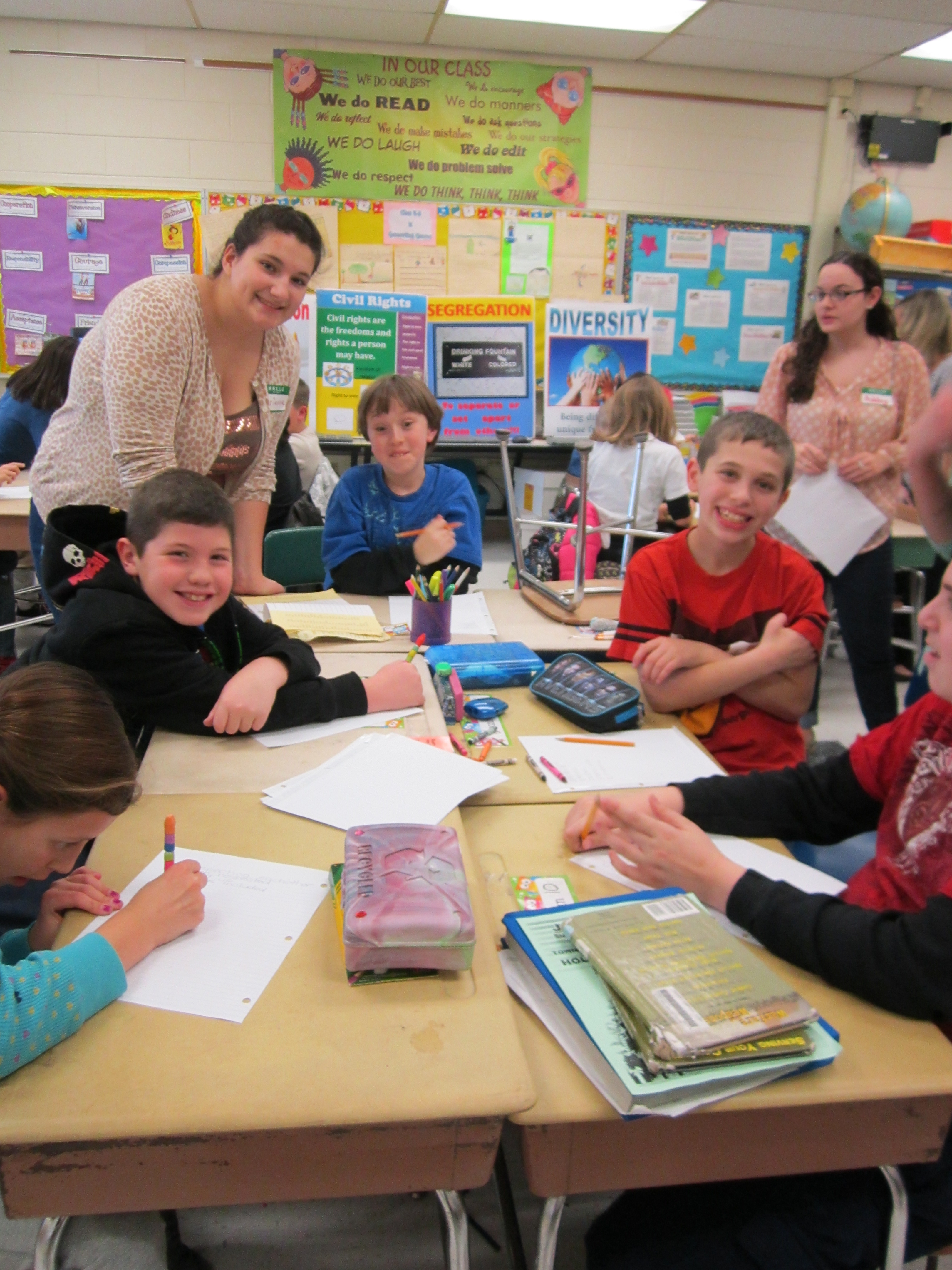 Sachem East’s National History Club stopped by Tecumseh Elementary School on Tuesday to teach three classes about courage and civil rights to fourth grade students.