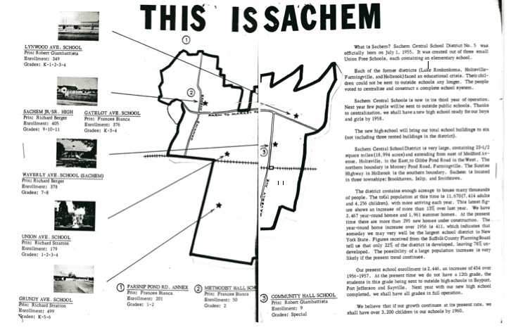 There is also a page of information explaining the basics of the Sachem Central School District at that time: