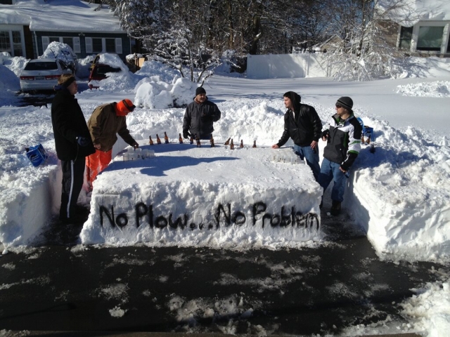 The Town of Brookhaven, Town of Islip and Suffolk County have all had major issues with dispatching plows to certain parts of the community. The Lacagnina’s had no problem putting in a little hard work and enjoying the fruits of their labor with some ice cold beverages on a snow beer pong table.