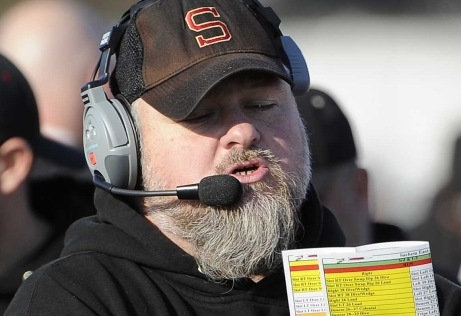 Sachem High School East football coach Mark Wojciechowski will shave his head and beard if the East football team raises $7,400 for this year’s St. Baldrick’s Day event scheduled for Monday, March 18.