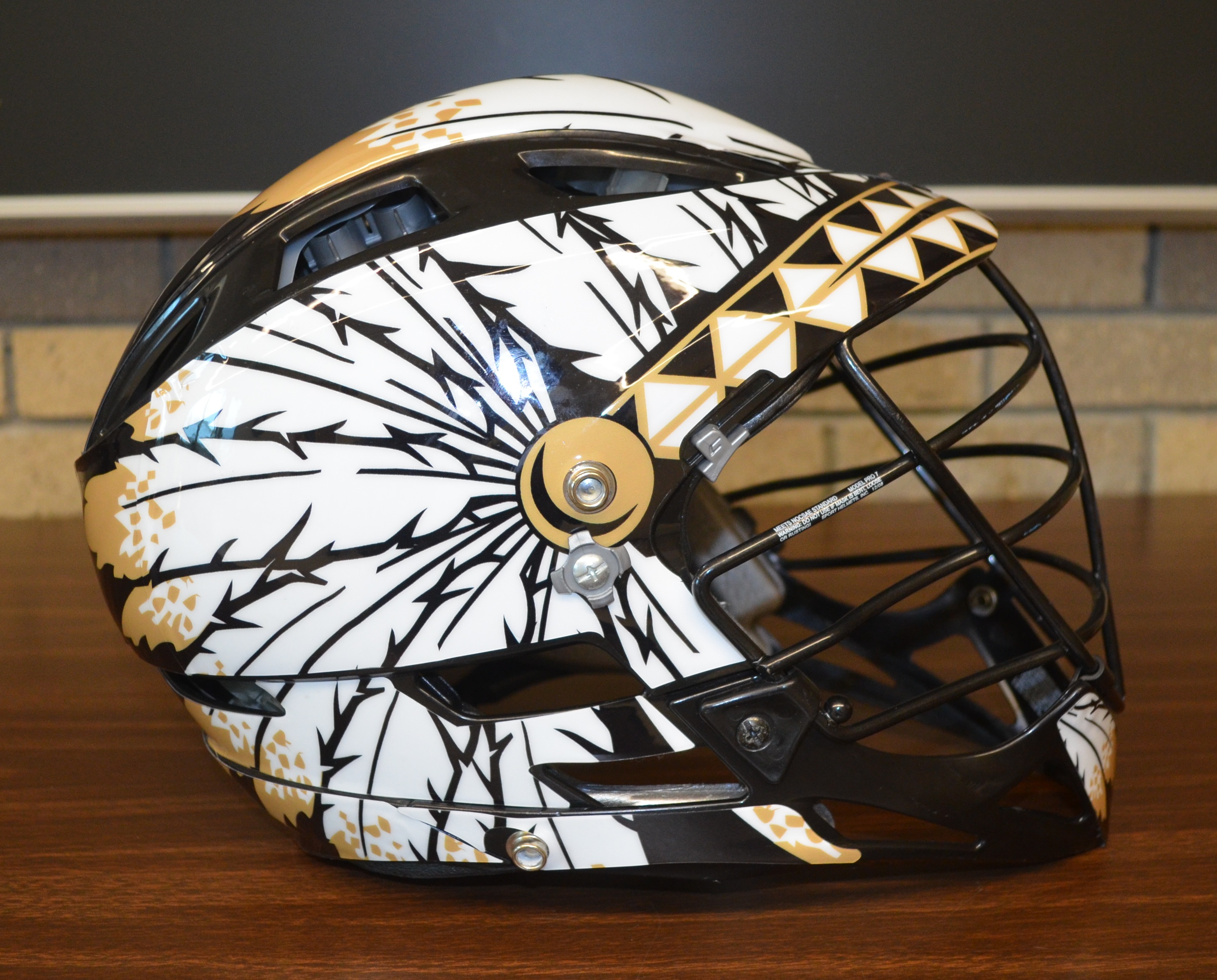 Sachem packs a heavy punch with its unique decals from HeadWrapz on the Cascade Pro7 helmet. The decal is of a Native American headdress and the first of its kind used in Sachem, which has evolved its helmet designs over the years.