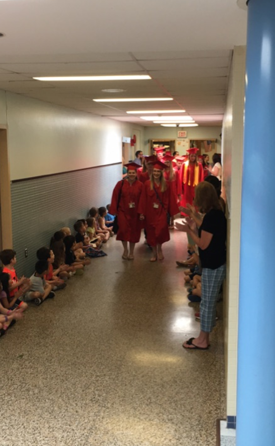 A number of seniors in Sachem took part in graduation walks at their old elementary schools across the district today. It was a special moment for the older kids and the younger students as well.