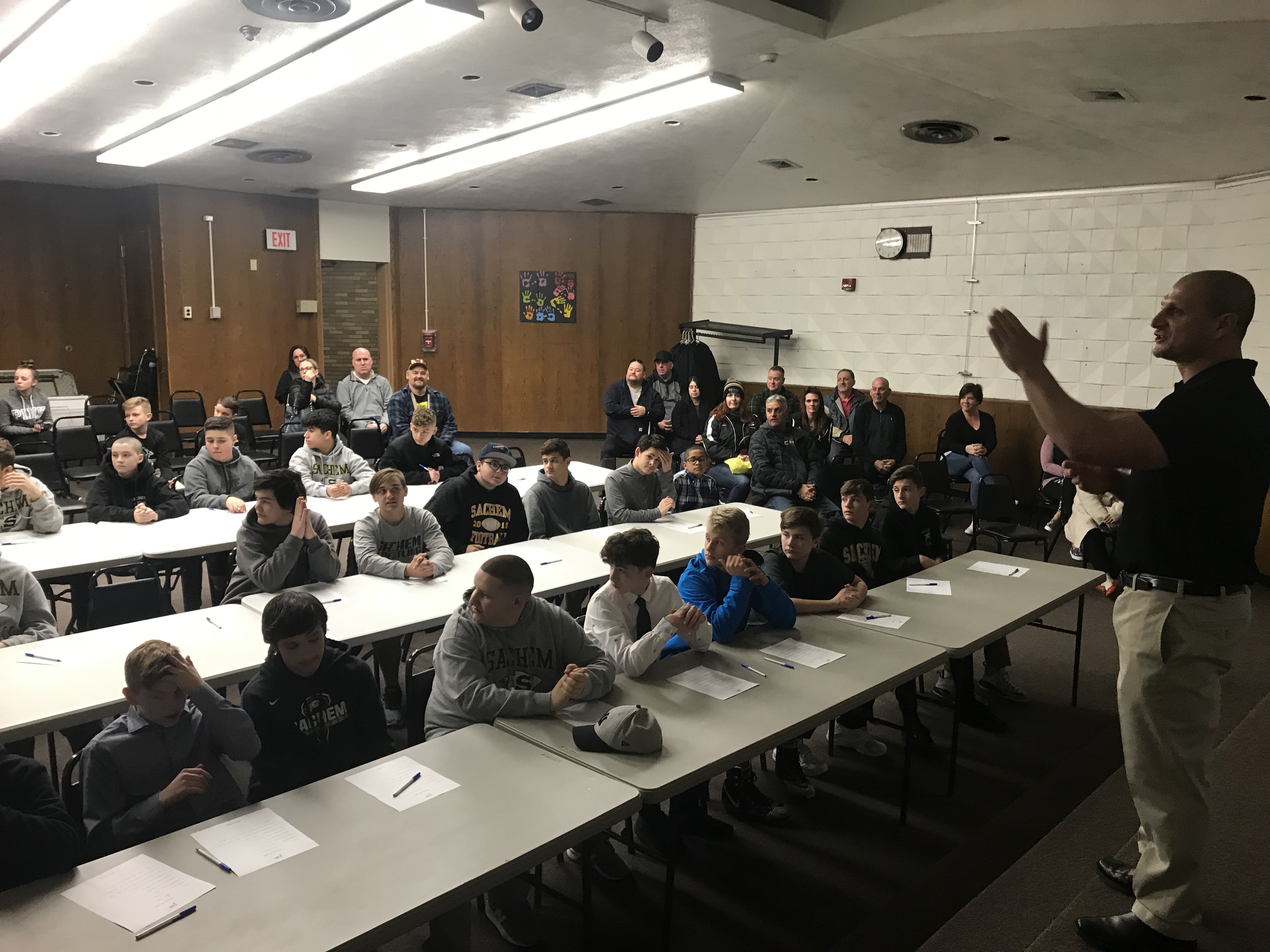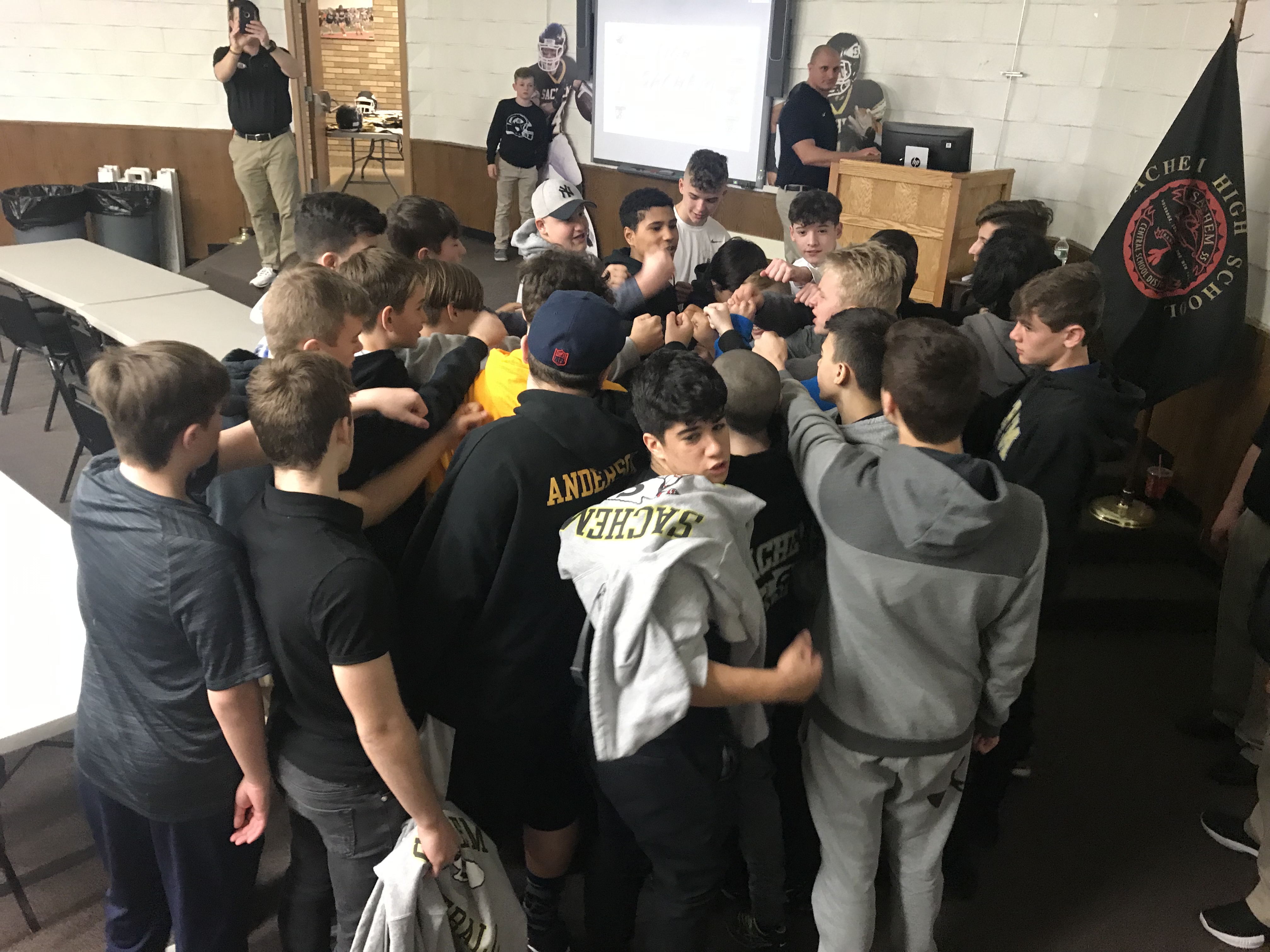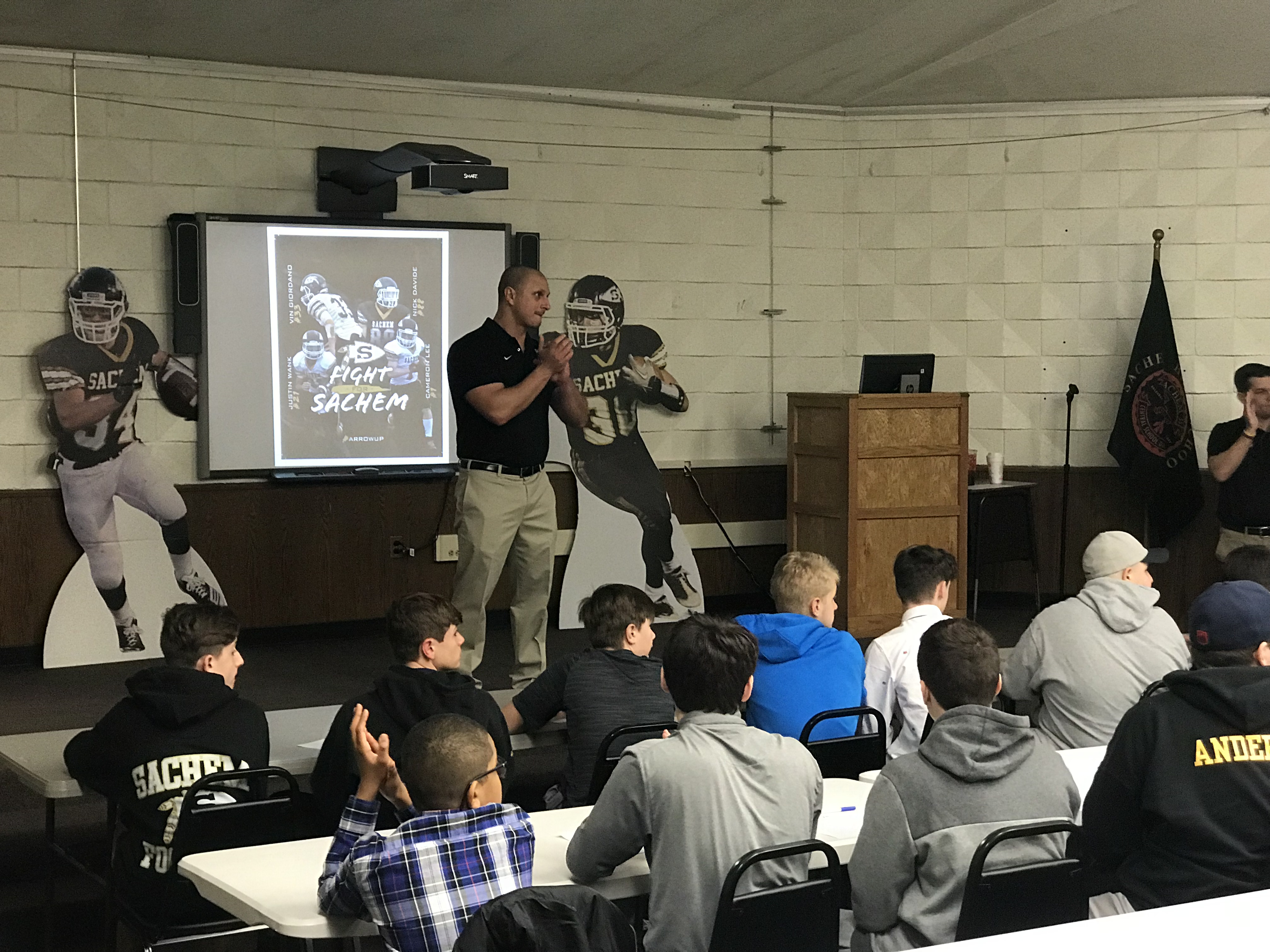 Sachem North coach Dave Caputo and his staff spoke to the student-athletes about dedication, determination, discipline, service and trust, the five pillars of the program.