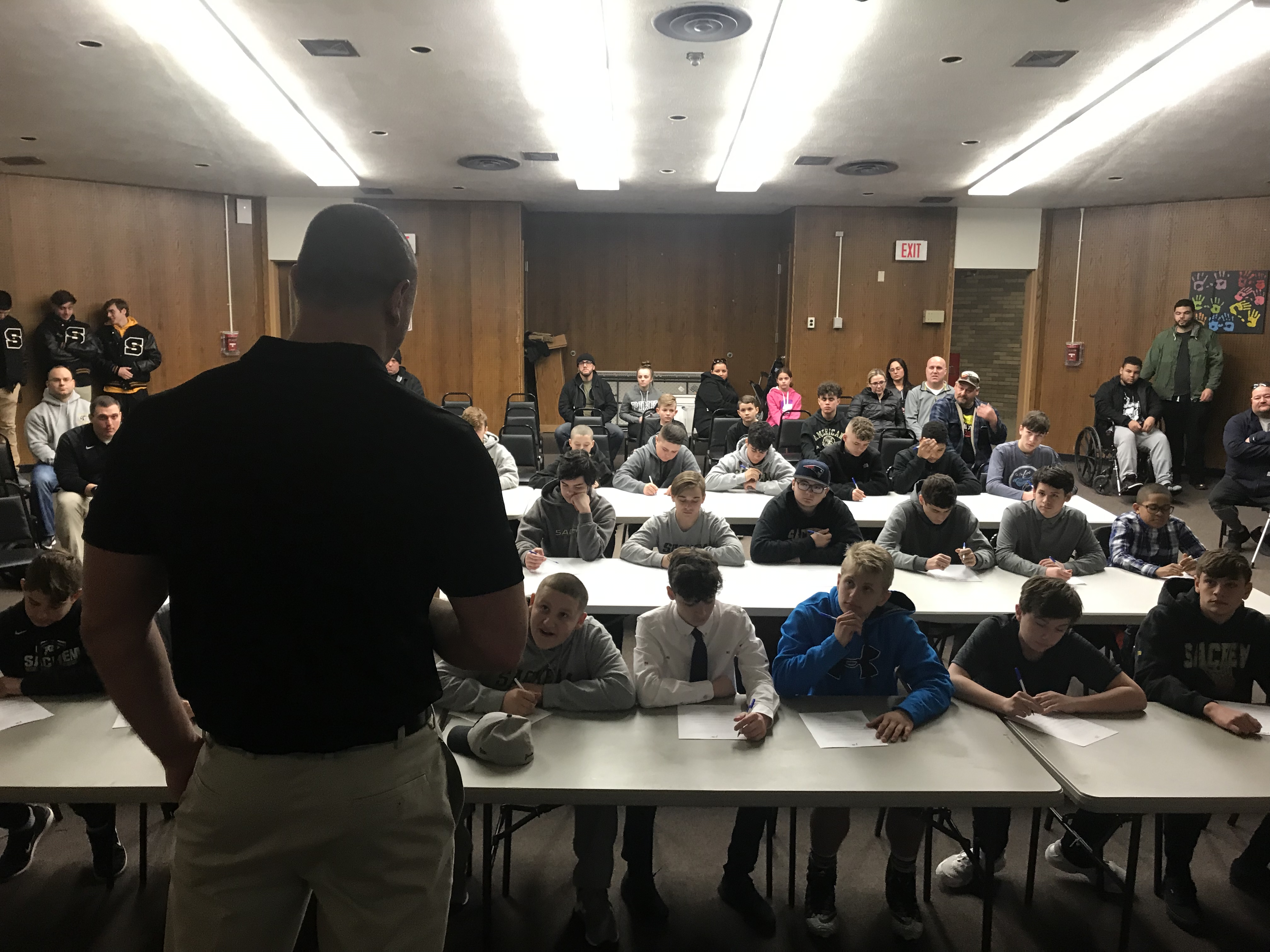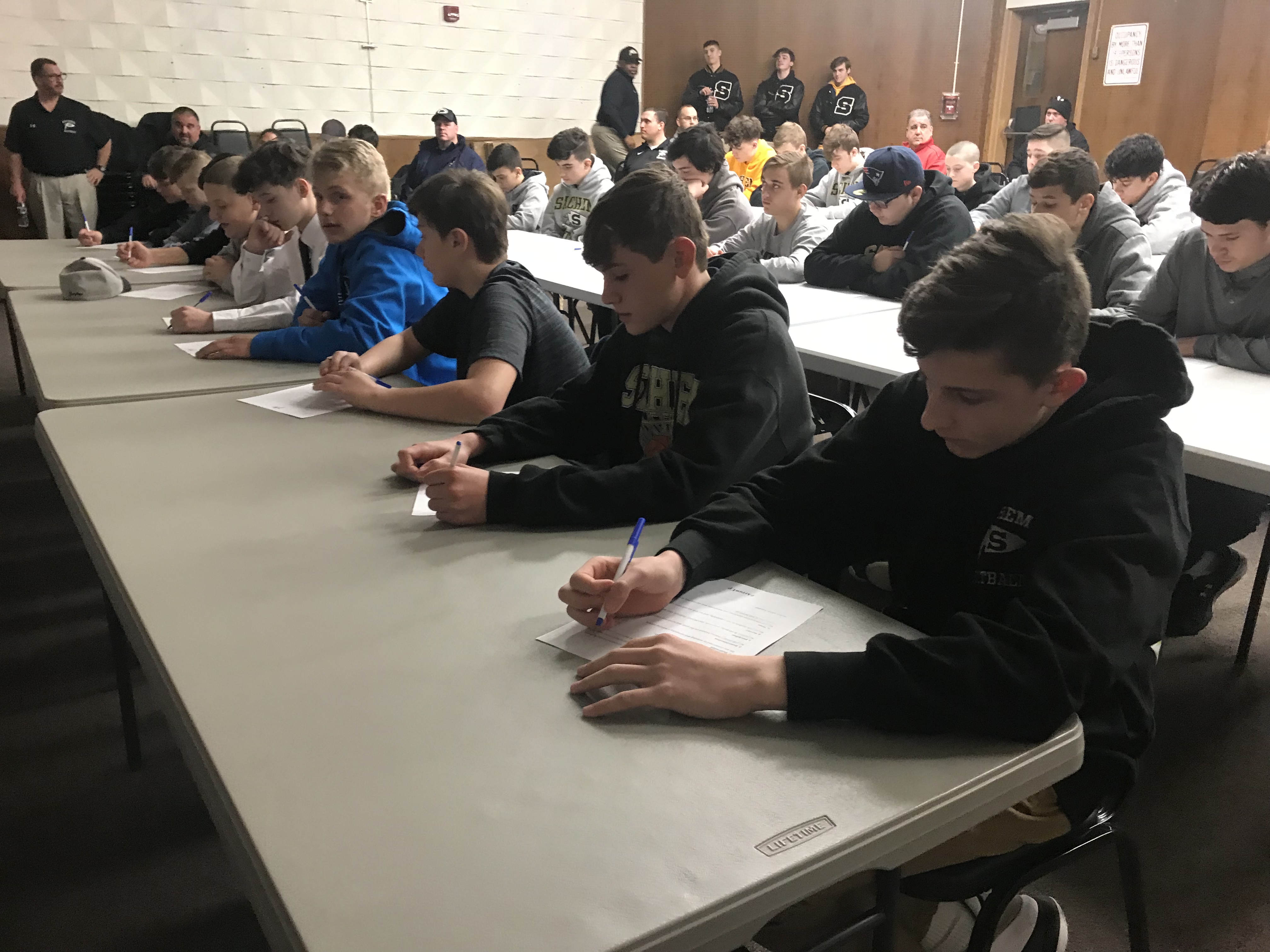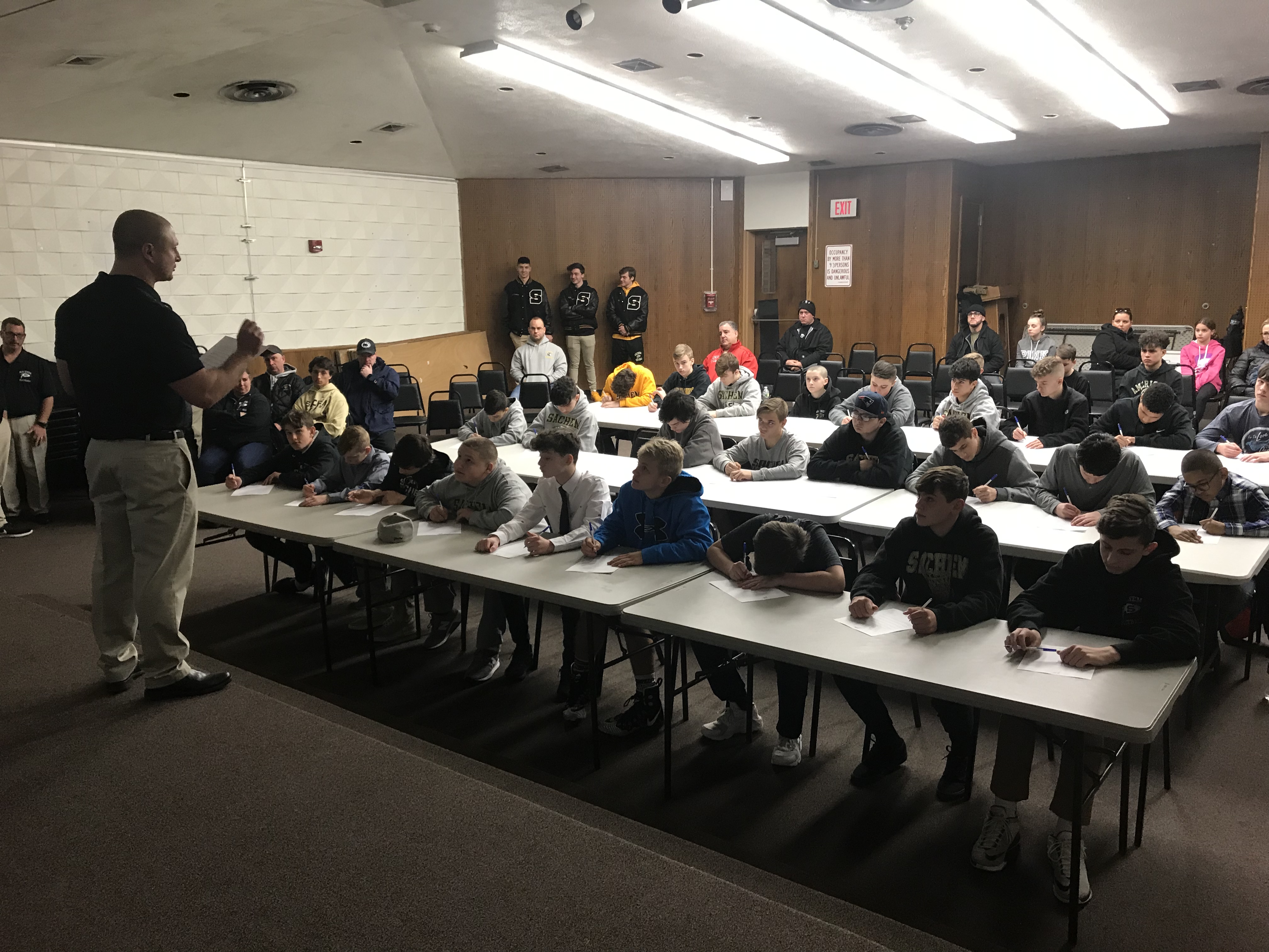 Players heard from and met Sachem varsity coaches, watched highlight films, went through a photo shoot and wore varsity helmets and jerseys, and signed their commitment letters.