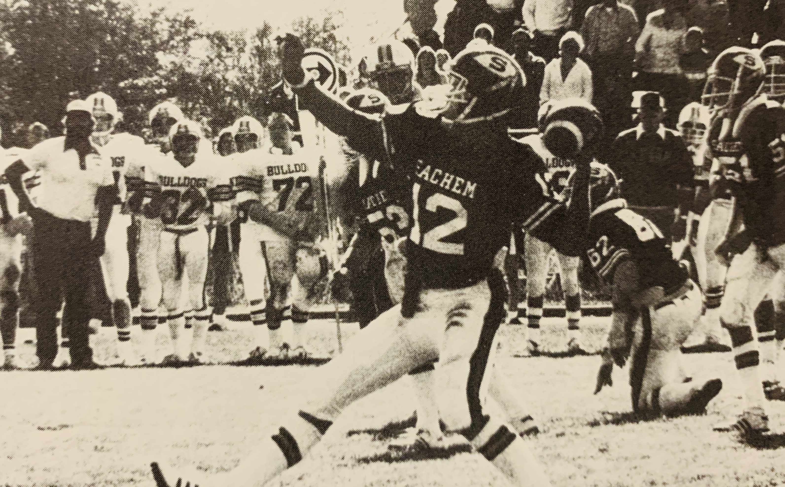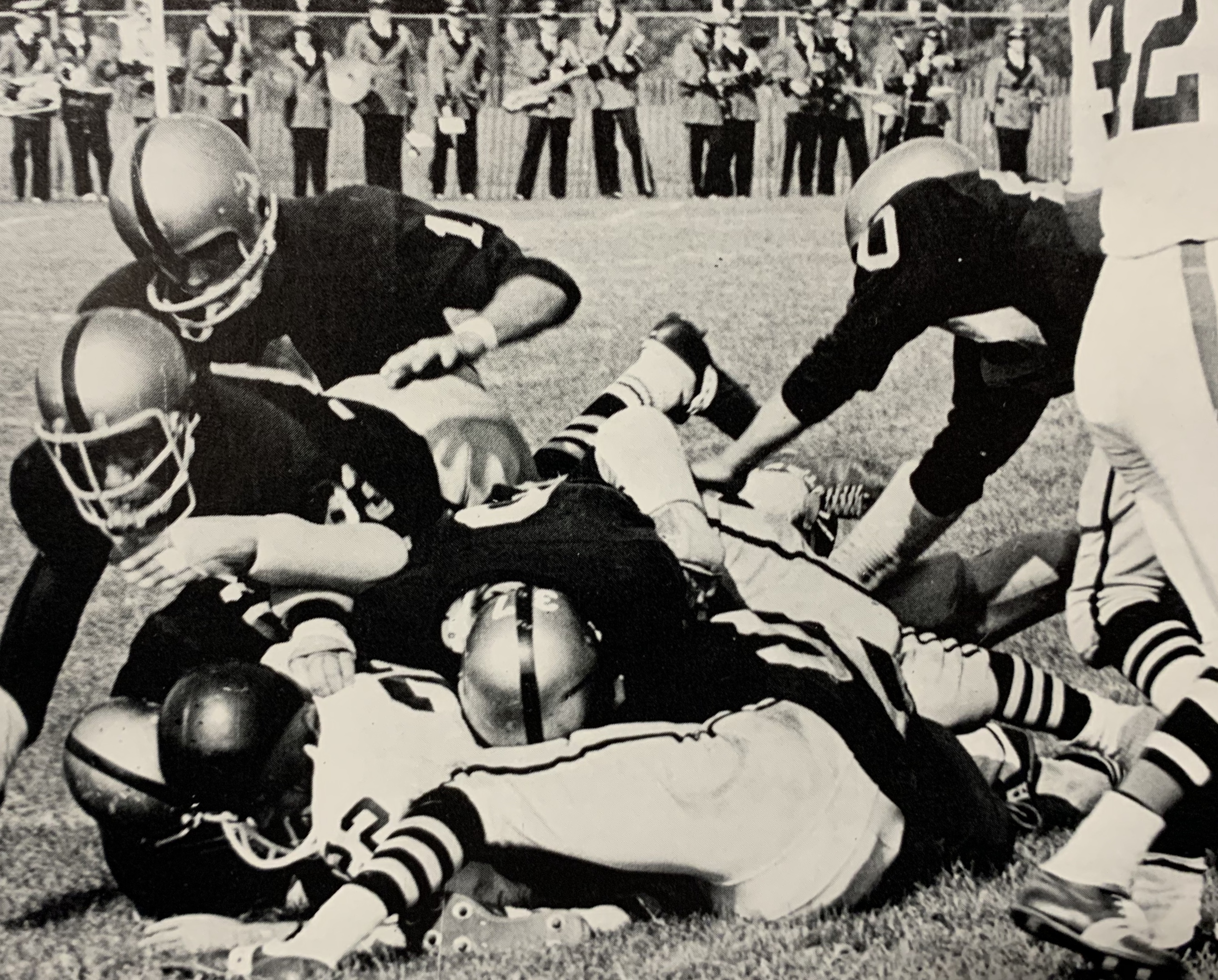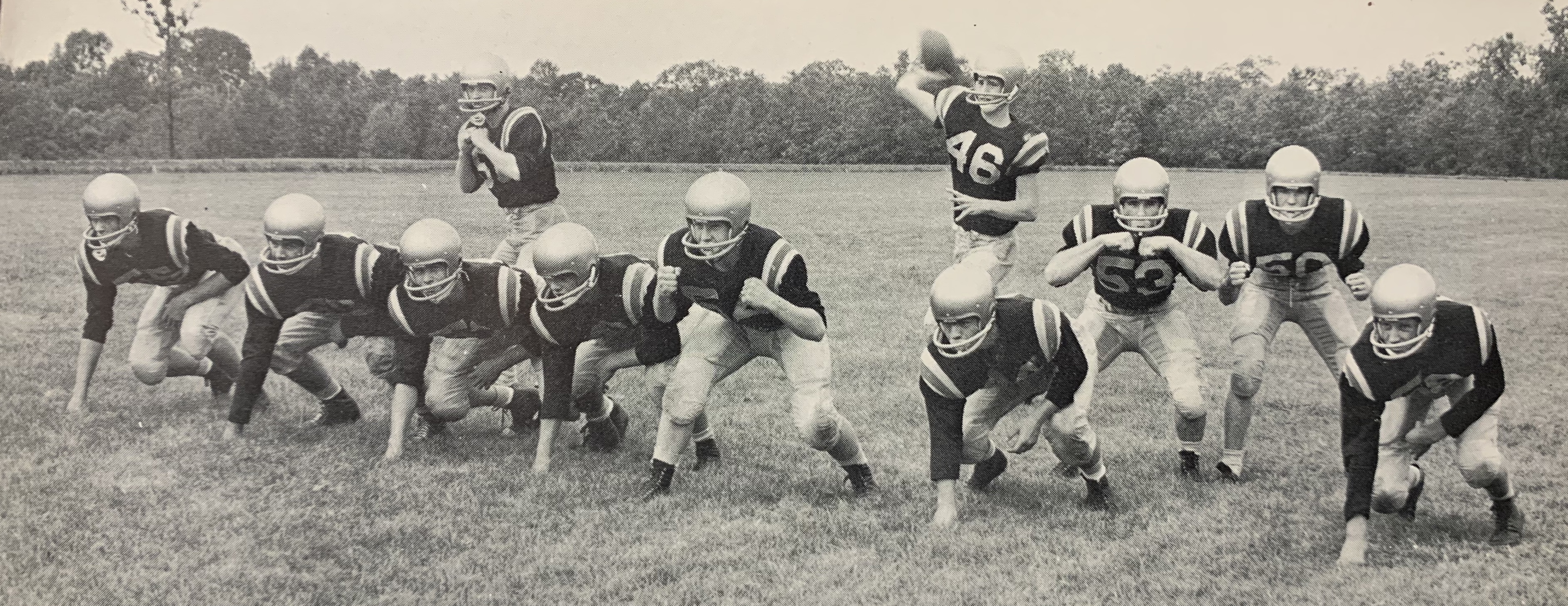 Sachem’s football program debuted in 1959 as a JV team, using two seasons to build up personnel, strategy and recruiting efforts. During year one of the program they used black helmets with a gold stripe down the middle, but by 1960 it was all about the gold. Think Notre Dame.