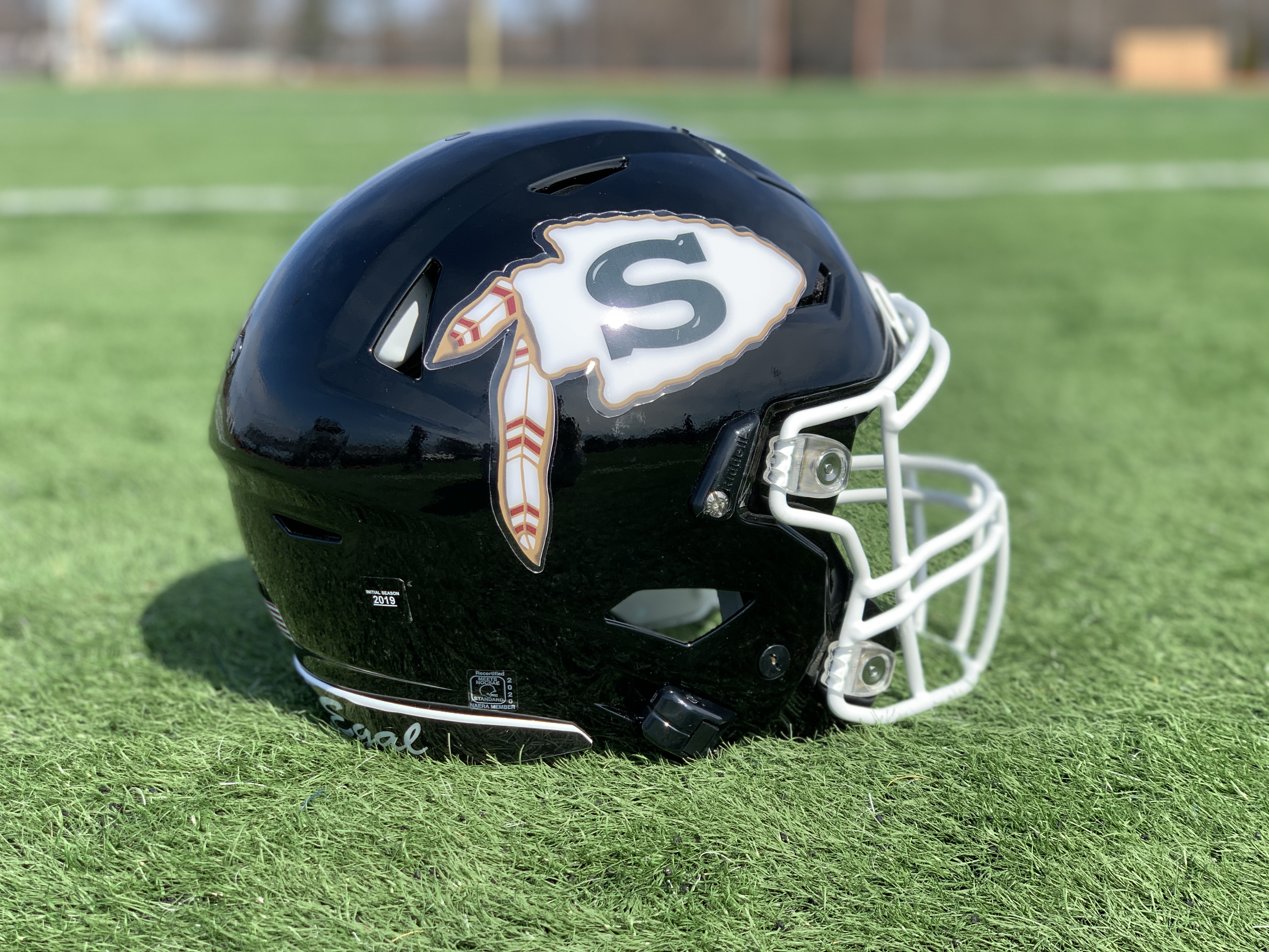 The 2020 helmets will also return to a glossy black paint, which was abandoned in 2011, and feature a new strip on the base of the back which says, “Sans Egal,” a Latin phrase meaning “Without Equal” that was adopted by Sachem’s founders in the 1960s. It has stood the test of time with Sachem diehards.